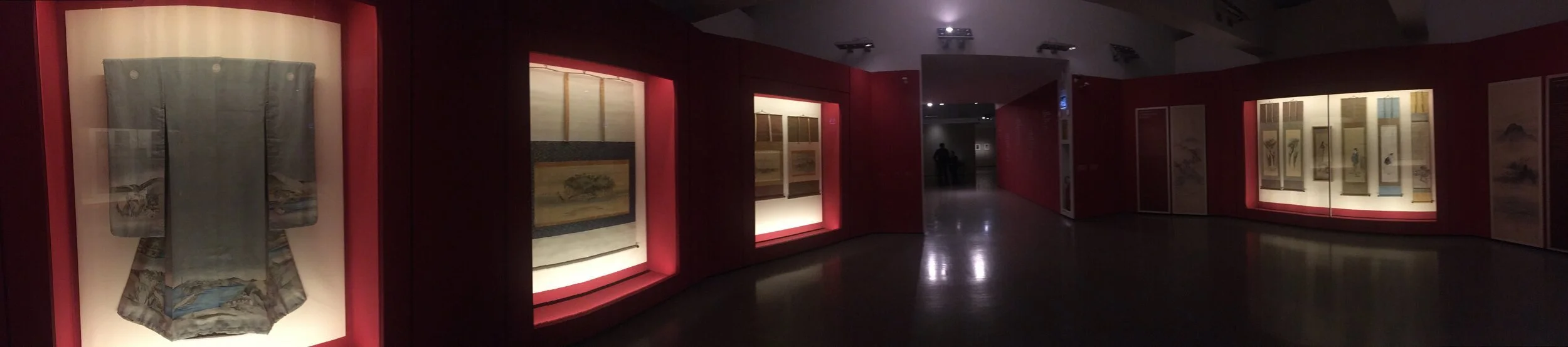 The exhibition has much more. Besides the carp, there are other fish, crabs, landscapes, mountains, seas, boats, gardens, women, families, sanctuaries, torii, neighbourhoods, crowded streets.